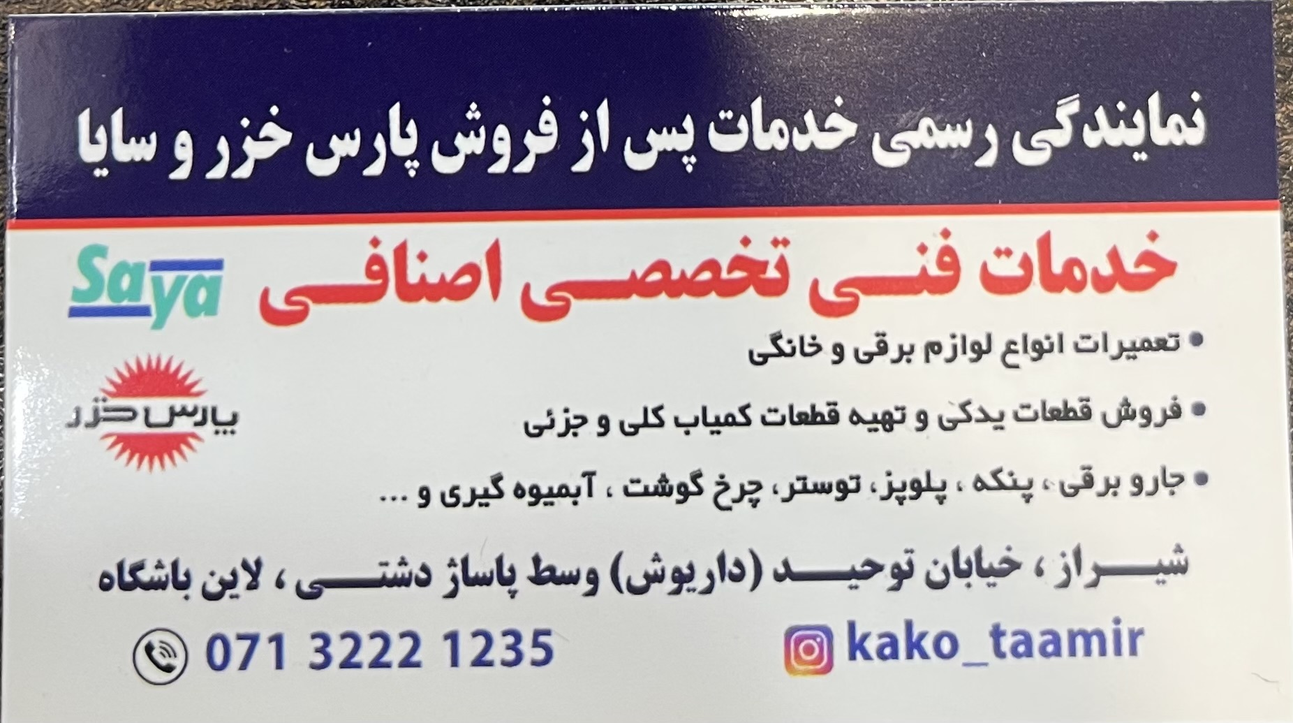 /سایا در شیراز با کد نمایندگی16022(شیراز،خیابان توحید،پاساژ دشتی)در خدمت هموطنان جهت ارسال قطعه های موجود به سراسر کشور میباشد